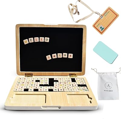 Alle My First Laptop, Toddler Learning Toys and Wooden Toy Computer, Magnetic and Drawing Board Toy for Kids, Educational Toys for 3 4 5 6 7 8 Year Old Kids